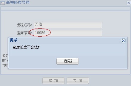 1.1)新增座席號(hào)碼(普通一號(hào)通模式):單擊座席設(shè)置,彈出頁(yè)面,單擊新增座席按鈕,彈出、設(shè)置頁(yè)面,輸入座席號(hào)碼,單擊增加按鈕,彈出成功提示框后,單擊確定,完成新增操作,如下