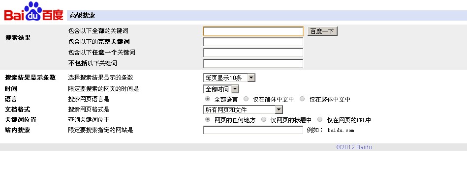 我們都知道百度會每天收錄內容的,很多時候我們辛辛苦苦寫的文章,卻不知道有沒有被百度收錄,今天就跟大家說說怎樣去查看自己發布的文章有沒被百度收錄了。 1、site+你的域名 這個方法不能具體地查看你的哪篇文章被收錄了,你可以看到你網站很多被百度收錄的頁面,你可以大體的看看哪些收錄了,這個比較粗略,如果你想查哪一篇是否被收錄了,那就不能用這種方法了,可以看看下面的方法。 2、利用百度的高級搜索功能去查詢,這里可以比較精確的去設置搜索選項,如下圖。
