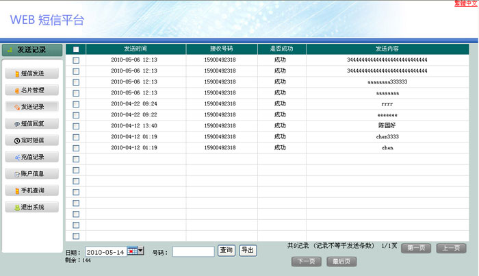 短信發送 導入發送 名片管理 導入名片 導出名片 發送記錄