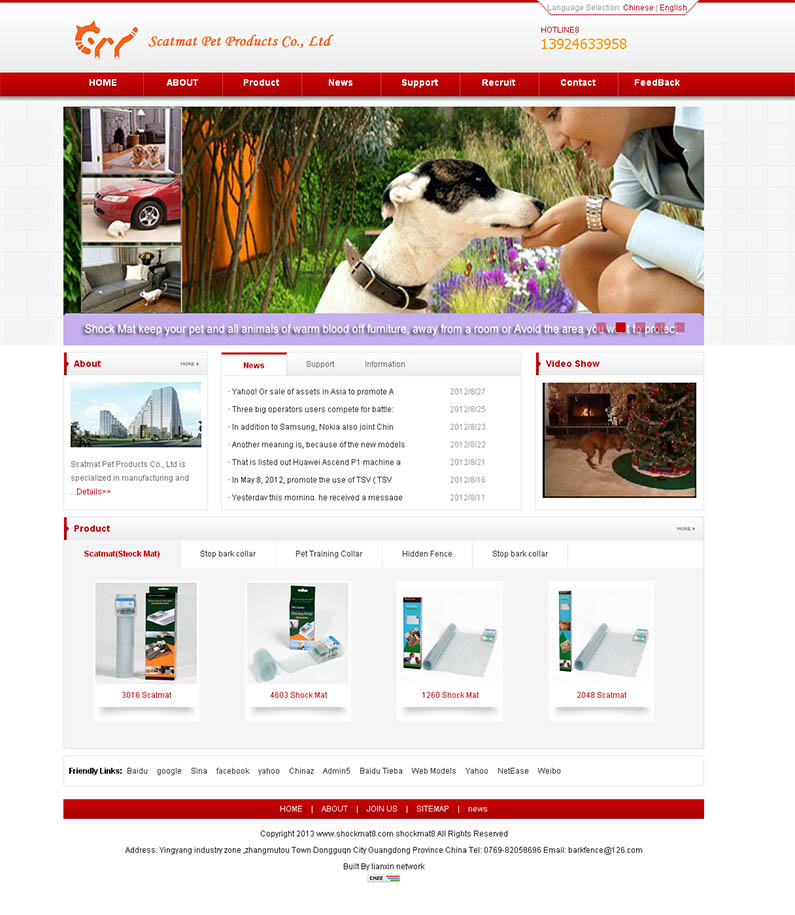 簡介:Scatmat寵物用品有限公司是一家專業生產和經營各種寵物用品。主要產品包括:沖擊墊(ScatMat),戶外(室內)止吠器,遙控寵物項圈,寵物隱藏柵欄...